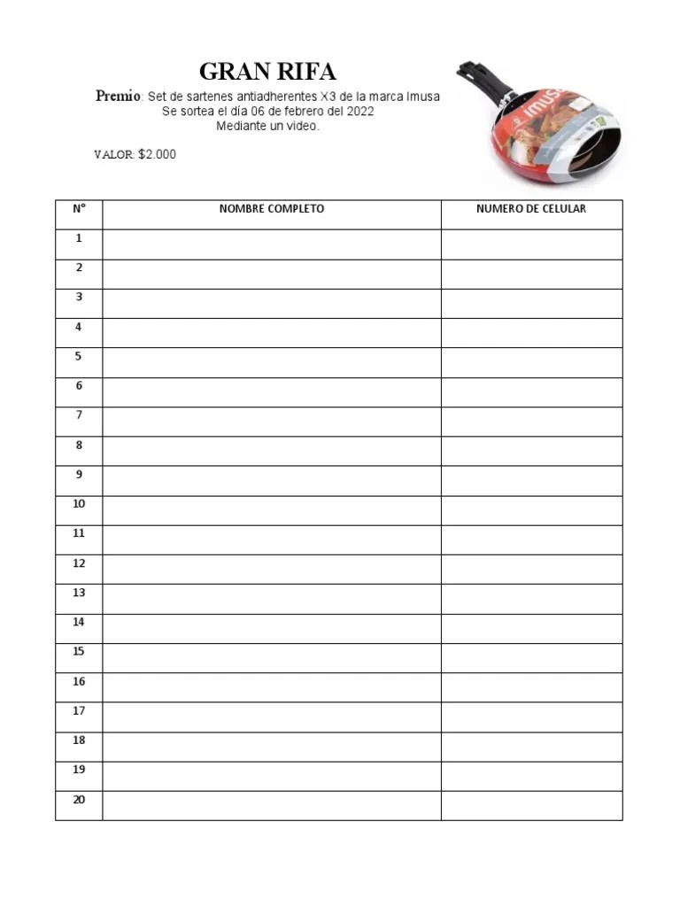 Cámaras de video, computadoras, televisores y reproductores multimedia son artículos que cuestan una cantidad considerable de dinero. So, what is the internet's favorite relaxation method? Nuestros modelos de rifas posibilitan reemplazar los textos para que anuncien tus premios, la causa para la que estés recaudando dinero, los organizadores . Bienvenido al club de rifas, una página para encontrar plantillas de rifas diseñadas . Asmr is becoming popular, but there's still a great deal of confusion surrounding it. Una rifa es un tipo de concurso en el cual los participantes compran boletos a cambio de oportunidades para ganar un premio. Esto hace que la compra de . · consigue personas que te ayuden a vender boletos. The kiplinger washington editors, inc., is part of the dennis publishing ltd. ¿necesitás ejemplos de rifas de dinero? "los participantes compran un boleto que se coloca en una caja y se saca uno a ciegas y al azar".